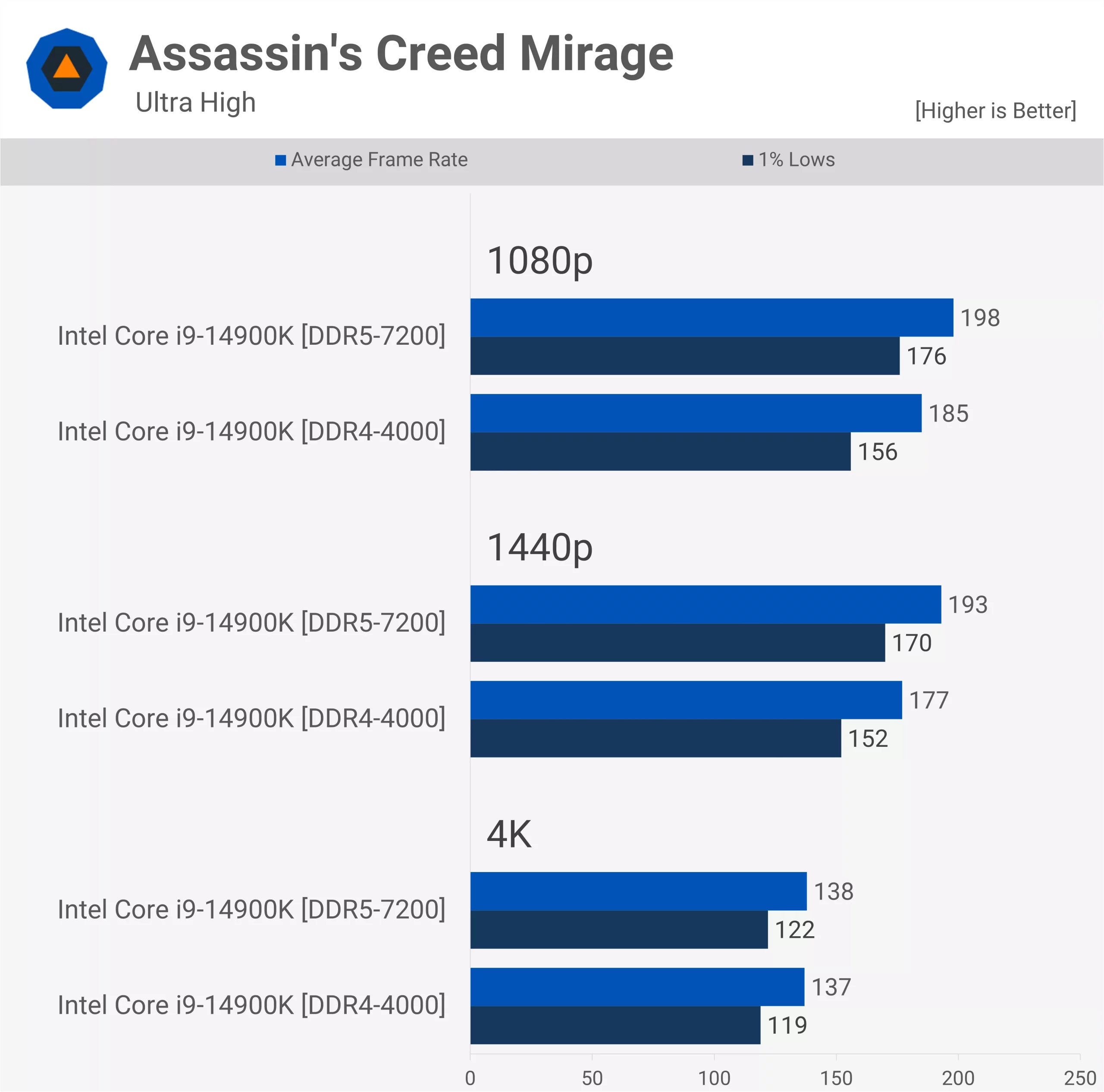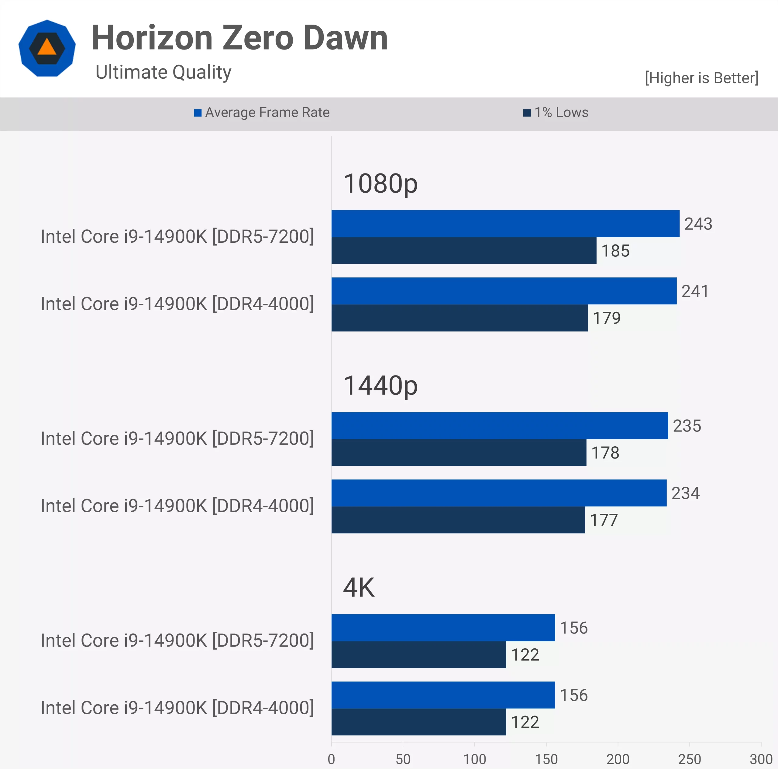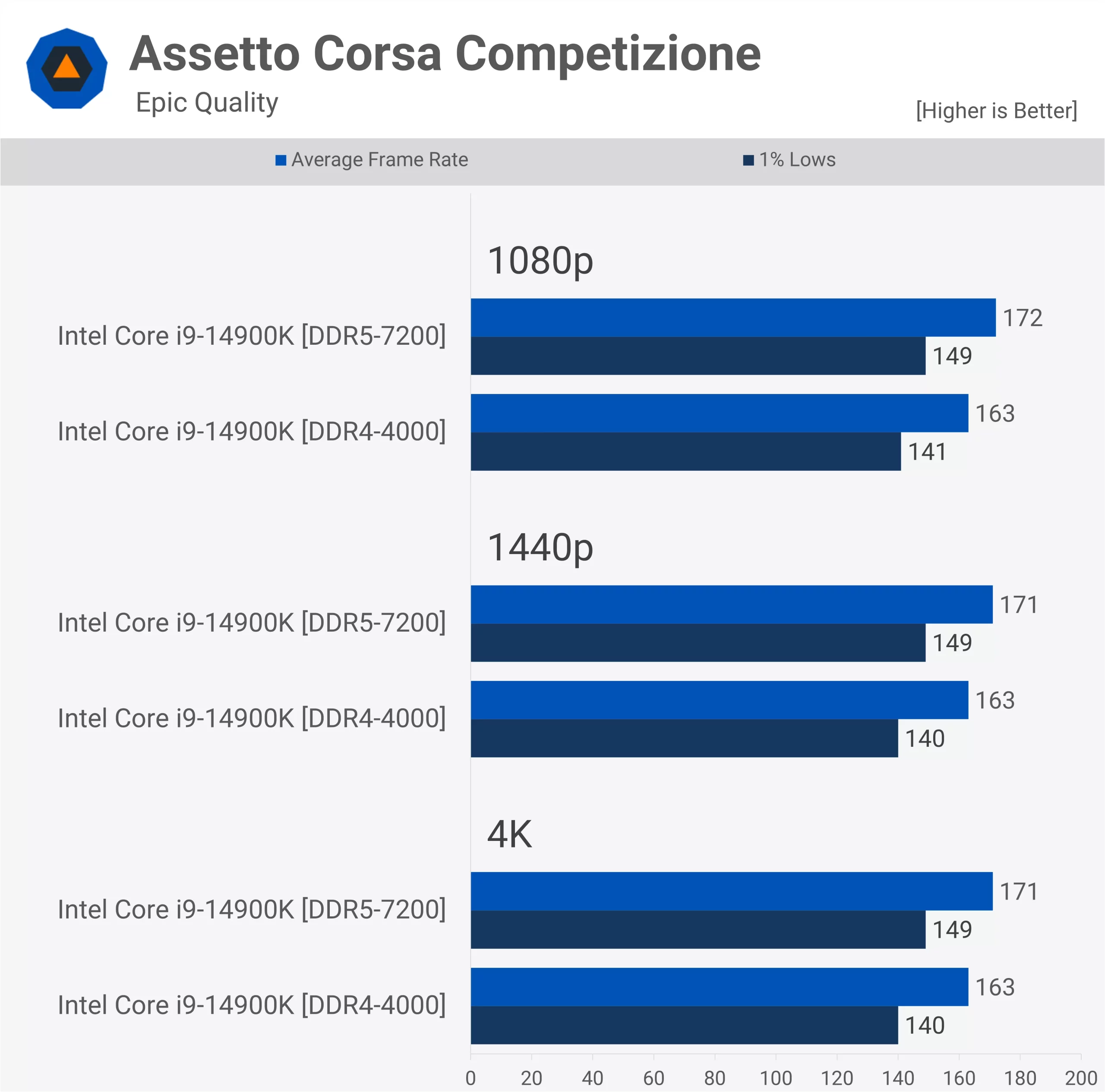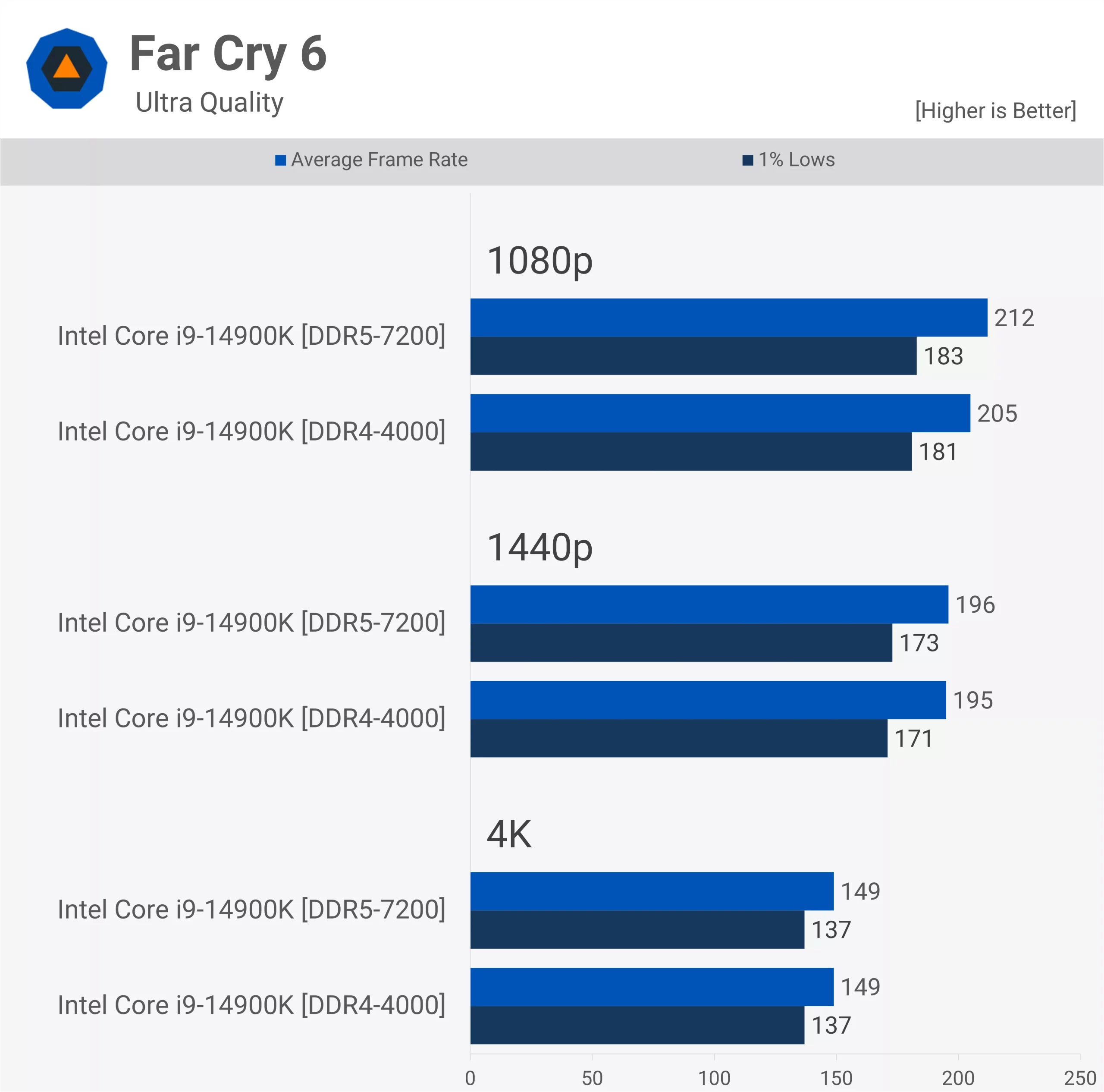 در ادامه به سراغ تست های بیشتر رم های DDR4 و DDR5 خواهیم رفت؛ در حالی که کیت رم DDR4-4000 را با یک کیت رم DDR5-7200 تست می کنیم. تست ها با سه رزولوشن 1080p، 1440p و 4K صورت گرفته اند.