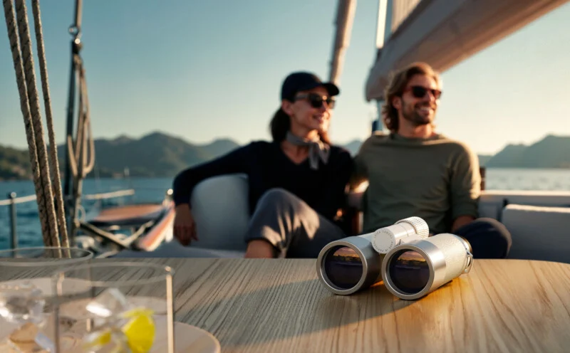 بزرگنمایی 7x آن تصویری پایدار حتی در دریاهای مواج را تضمین میکند. پوشش AquaDura لنزها را در برابر آب محافظت کرده و طراحی لوکس آن با چرم سفید و استیل ضد زنگ، حس یک اکسسوری دریایی را القا میکند. همچنین میدان دید گسترده برای رصد افق دریایی بسیار مفید است.