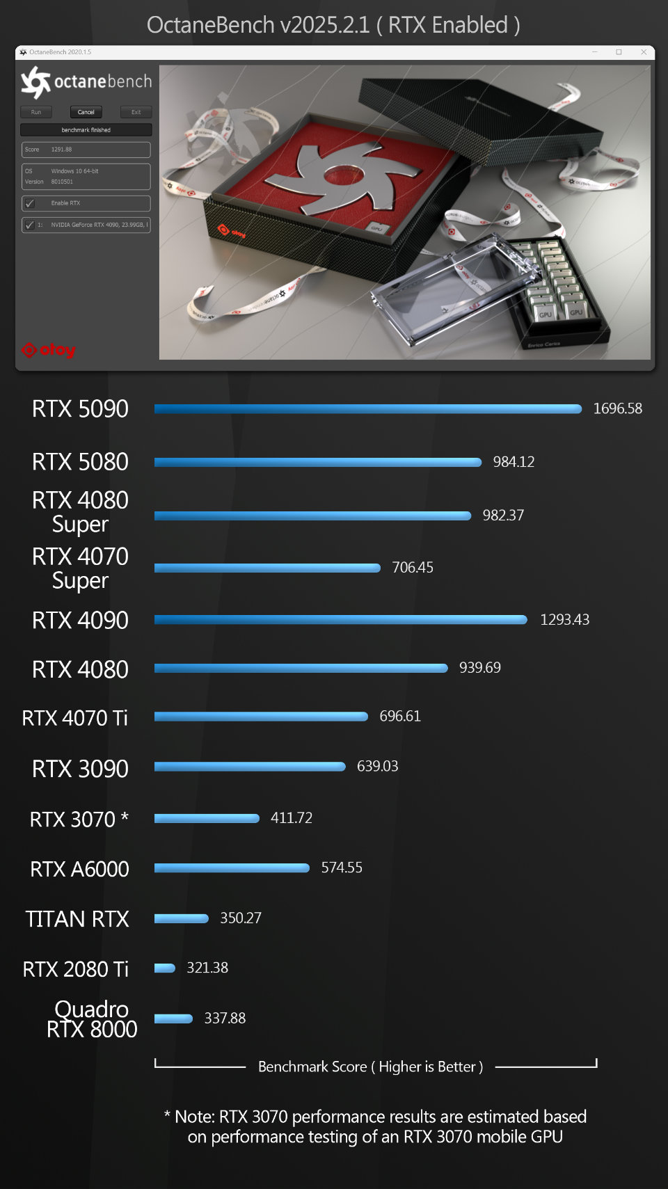 - بنچمارکهای مصنوعی: 3DMark Speed Way 1.0 and Port Royal 1.2, OctaneBench 2025.2.1, Redshift Benchmark 3.5, Unity Enemies Demo, V-Ray Benchmark 6.00.02
