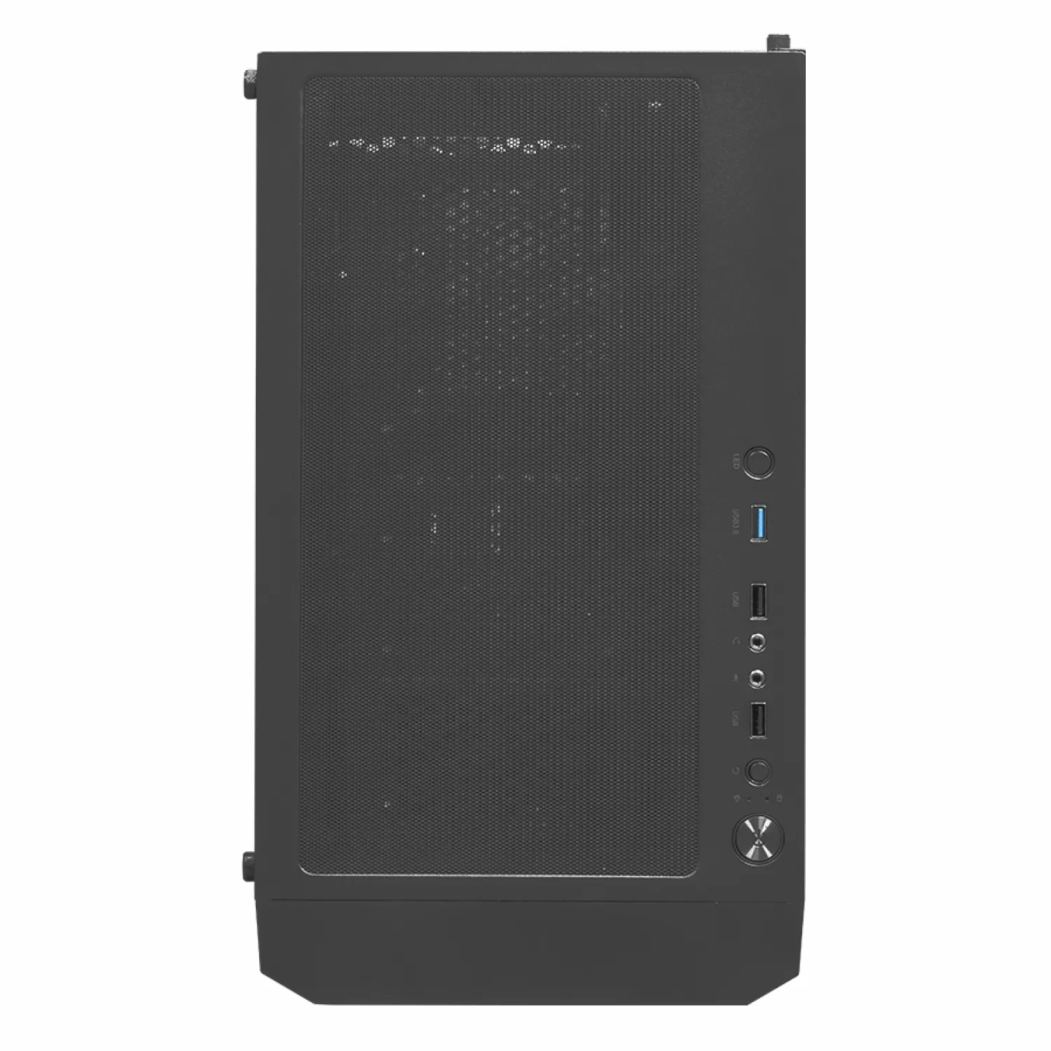 اولین چیزی که در مواجهه با این کیس از برند اوست توجه را جلب میکند، پنل جلویی آن است. برخلاف خیلی از مدلهای پر زرقوبرق که با شیشه و پلاستیک فشرده راه نفس کشیدن قطعات را میبندند، اینجا با یک پنل کاملاً مشبک یا همان «مِش» طرف هستیم. این یعنی چه؟ یعنی جریان هوا. یعنی پردازنده و کارت گرافیک شما، مخصوصاً زیر فشار رندرینگ یا وسط یک بازی سنگین، قرار نیست خفه شوند. این یک انتخاب هوشمندانه و کاربردی است، مخصوصاً برای کسانی که عملکرد را به ظاهر صرف ترجیح میدهند.
