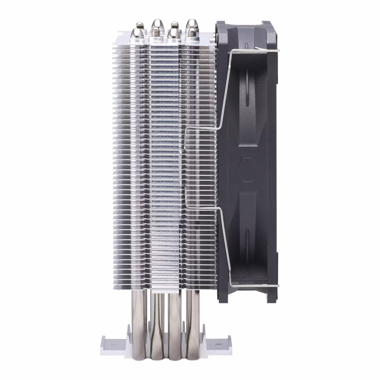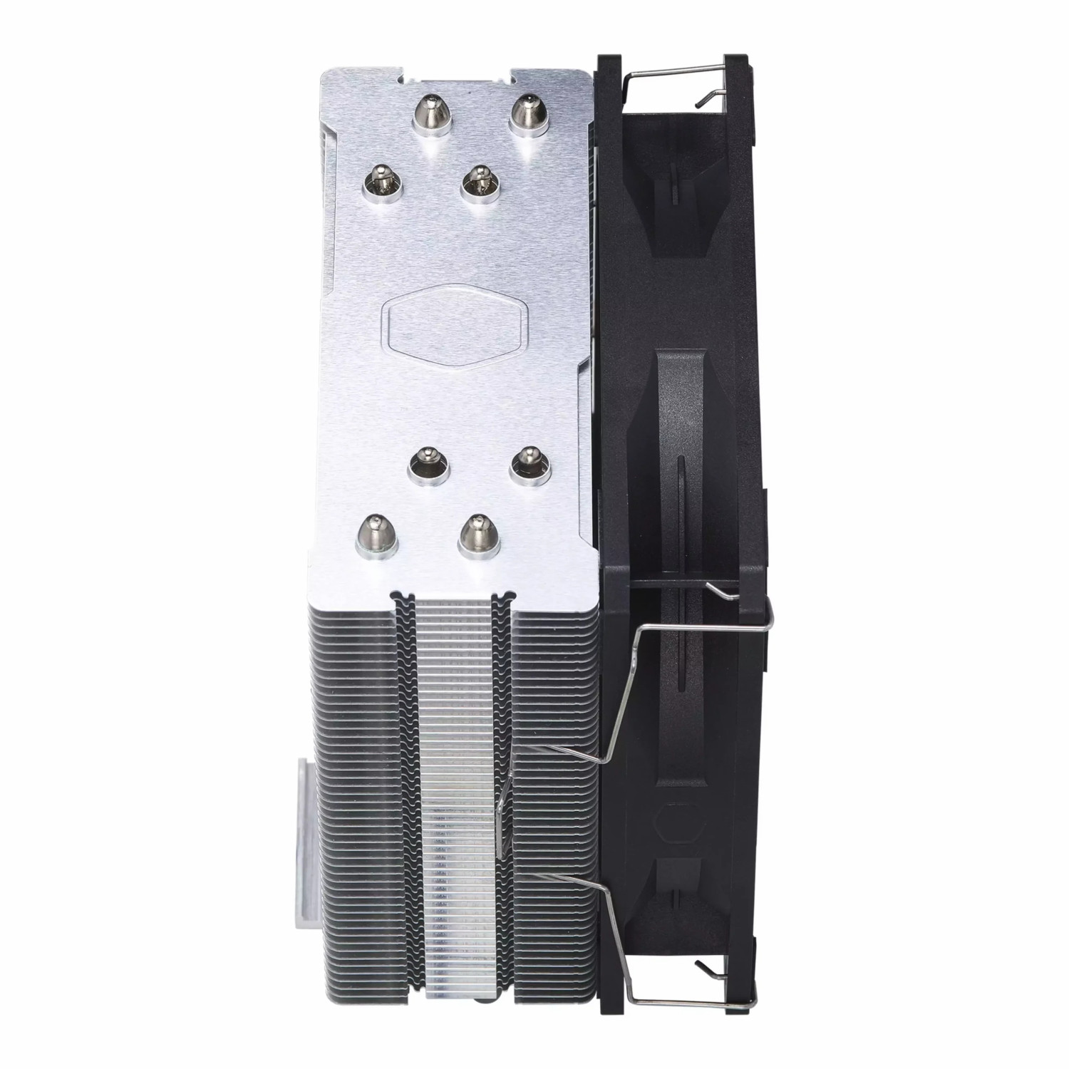 از همین ابتدا بگویم که با یک انقلاب بزرگ طرف نیستیم. کولرمستر به فرمول موفق همیشگی خود وفادار مانده است. شاسی و پایه‌ی اصلی، همان طراحی آشنای قدیمی را دارد. در این ساختار، چهار لوله حرارتی مسی حرارت را مستقیماً از سطح پردازنده می‌گیرند. سپس آن را به پره‌های آلومینیومی منتقل می‌کنند. فعالان این حوزه به این روش، تکنولوژی Direct Contact می‌گویند.